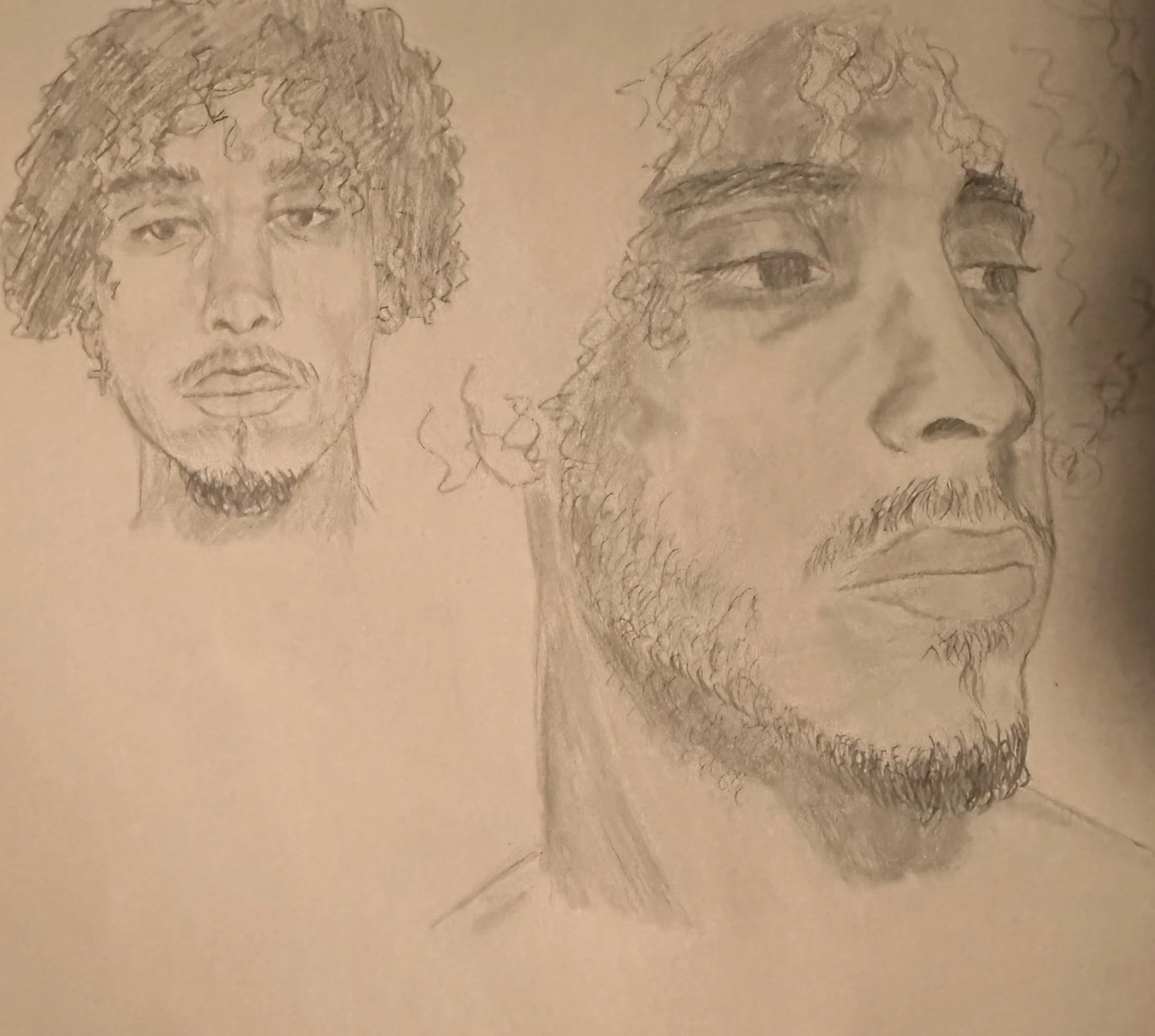The following sketches capture different angles of myself. These pieces helped me with figure drawing and understanding the importance of shading.