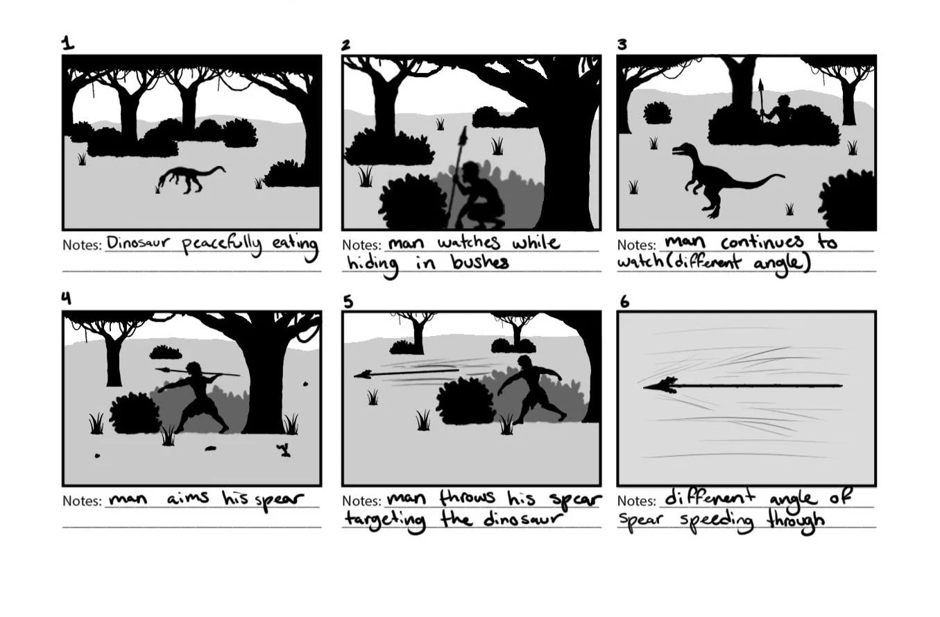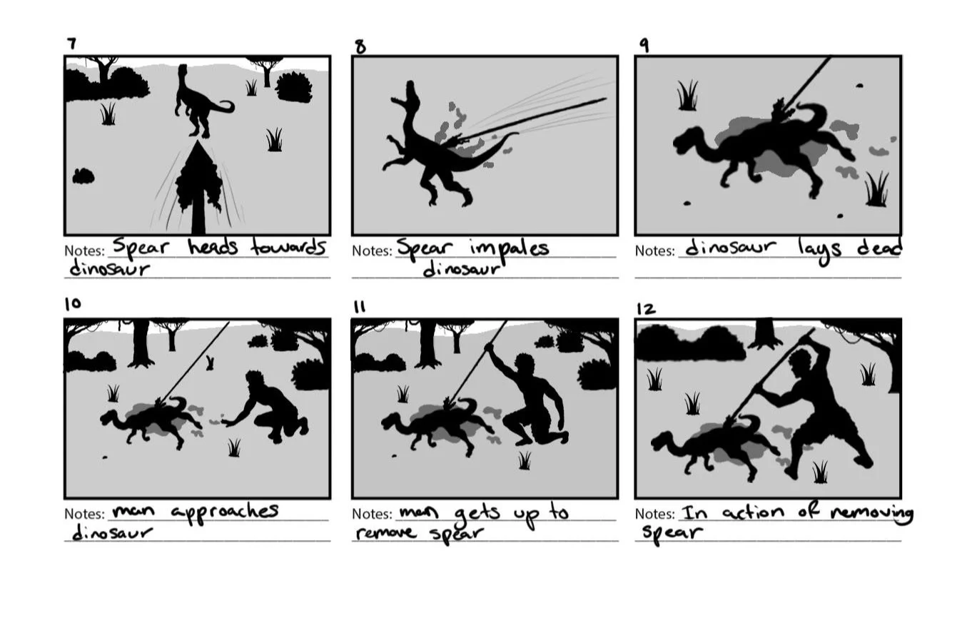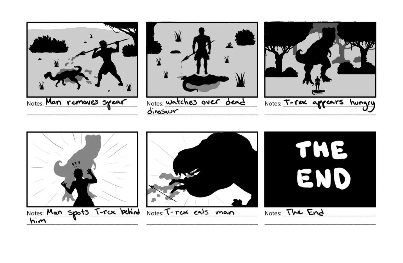 This storyboard represents the food chain in a prehistoric time. We were limited to only using silhouettes to tell a story.