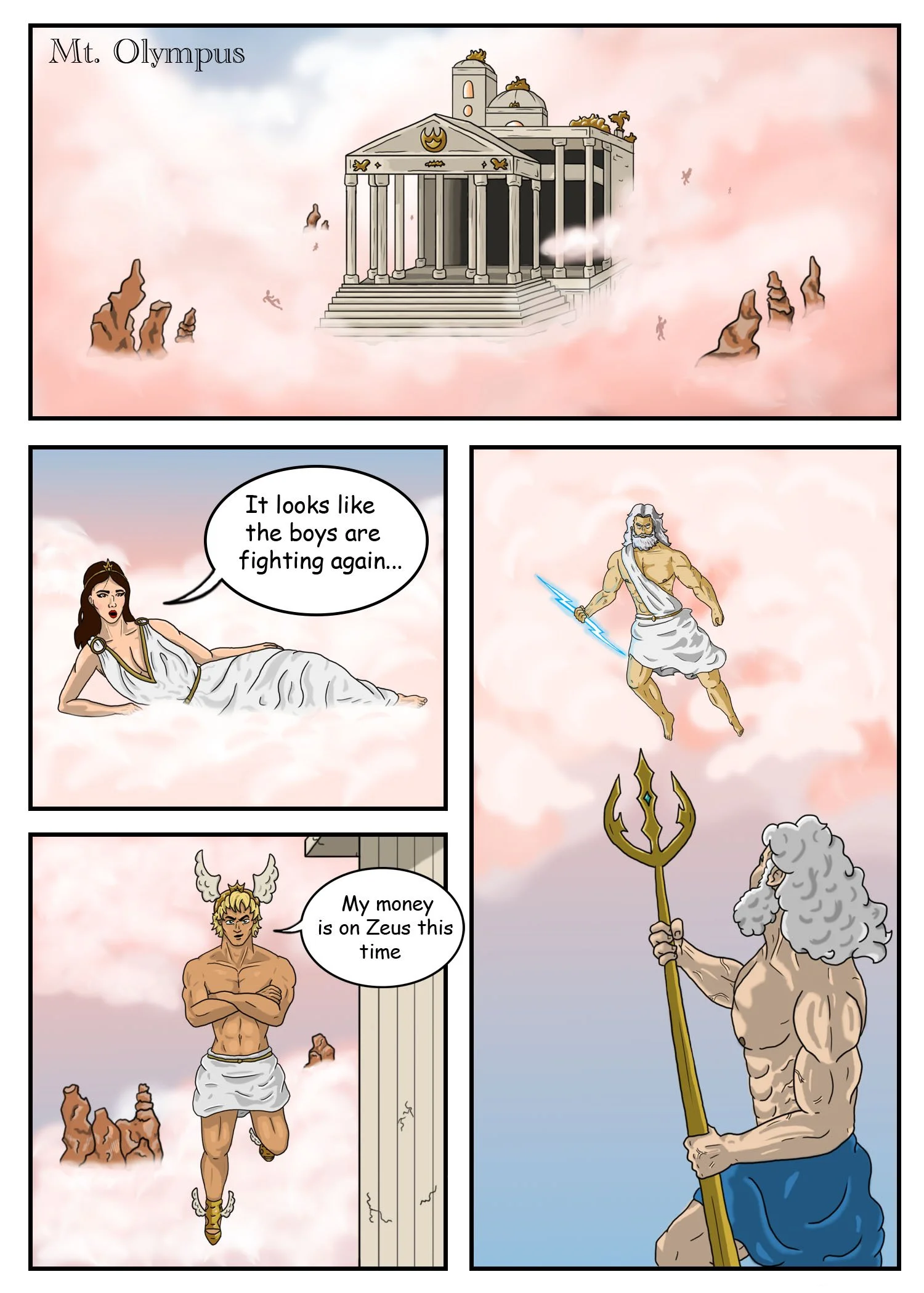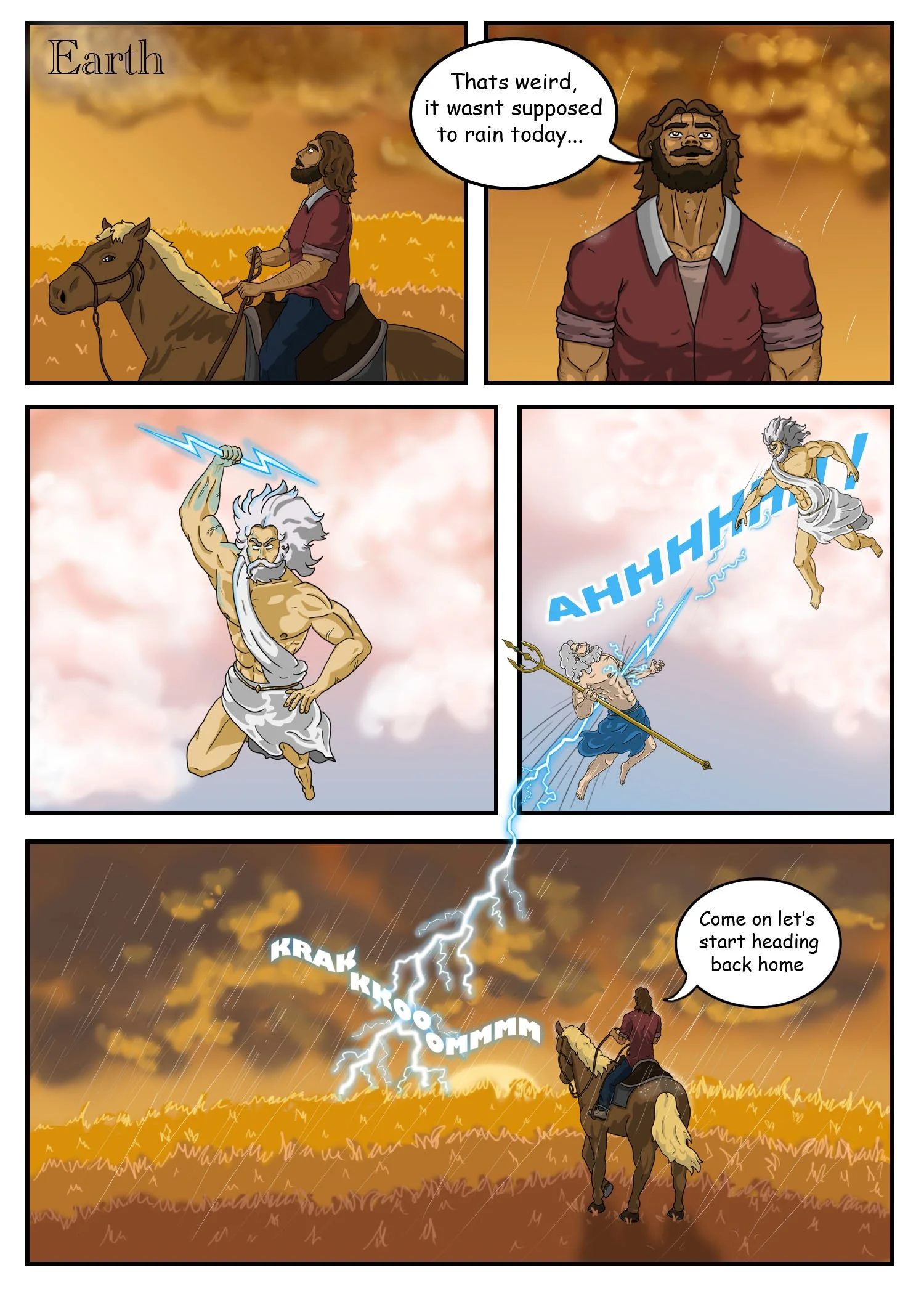 For this story, our prompt was to give an origin story to a superhero that we designed in a previous assignment. The character follows a horse rider’s stroll into an unexpected surprise that results from a battle of the Greek Gods above.